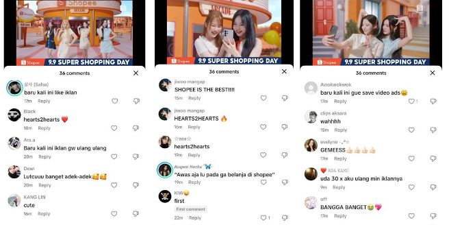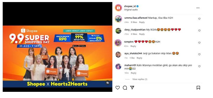 Respon positif juga terus berdatangan dan dapat dilihat pada kolom komentar di unggahan Shopee Indonesia. Banyak yang mengakui kalau campaign Shopee bareng Hearts2Hearts jadi “Janji ga bakalan skip iklan ????????” dan sukses bikin tangan otomatis klik tombol belanja.
