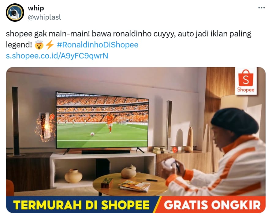 "Wah udah lama gak lihat selebrasi gol Ronaldinho, makasih Shopee! ❤"